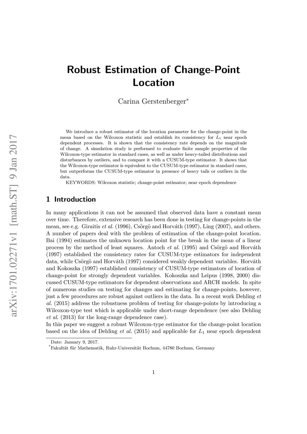 We introduce a robust estimator of the location parameter for the change-point in the mean based on the Wilcoxon statistic and establish its consistency for near epoch dependent processes. It is shown that the consistency rate depends on the magnitude of change. A simulation study is performed to evaluate finite sample properties of the Wilcoxon-type estimator in standard cases, as well as under heavy-tailed distributions and disturbances by outliers, and to compare it with a CUSUM-type estimator. It shows that the Wilcoxon-type estimator is equivalent to the CUSUM-type estimator in standard cases, but outperforms the CUSUM-type estimator in presence of heavy tails or outliers in the data.