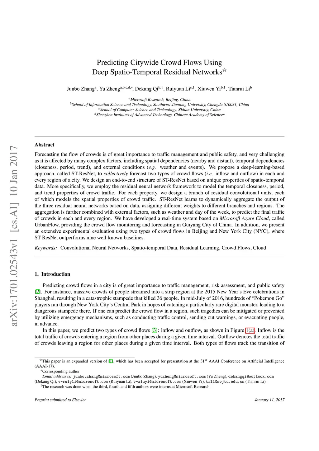 Predicting Citywide Crowd Flows Using Deep Spatio-Temporal Residual