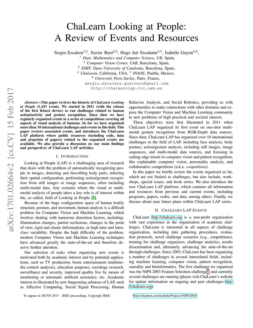 ChaLearn Looking at People: A Review of Events and Resources