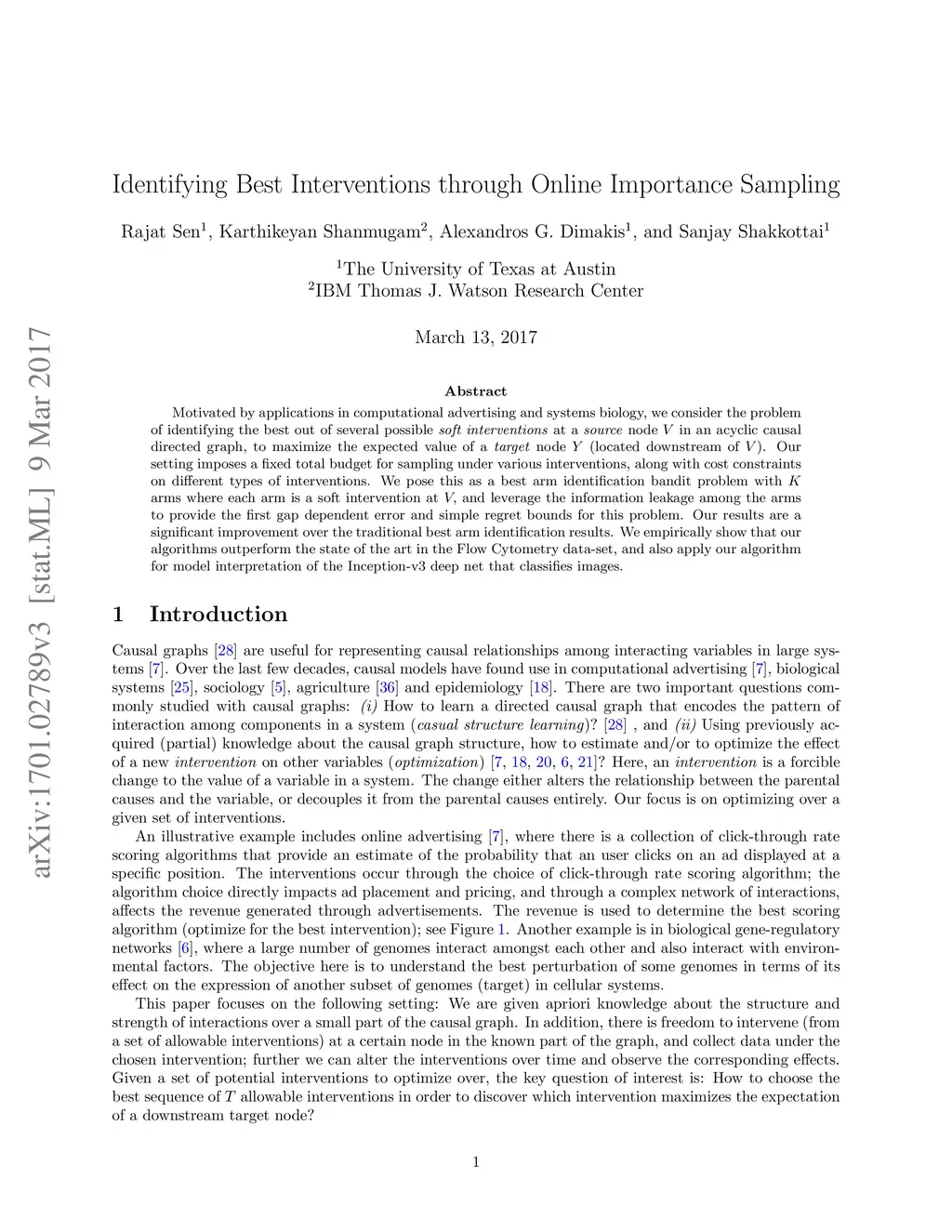 Identifying Best Interventions through Online Importance Sampling