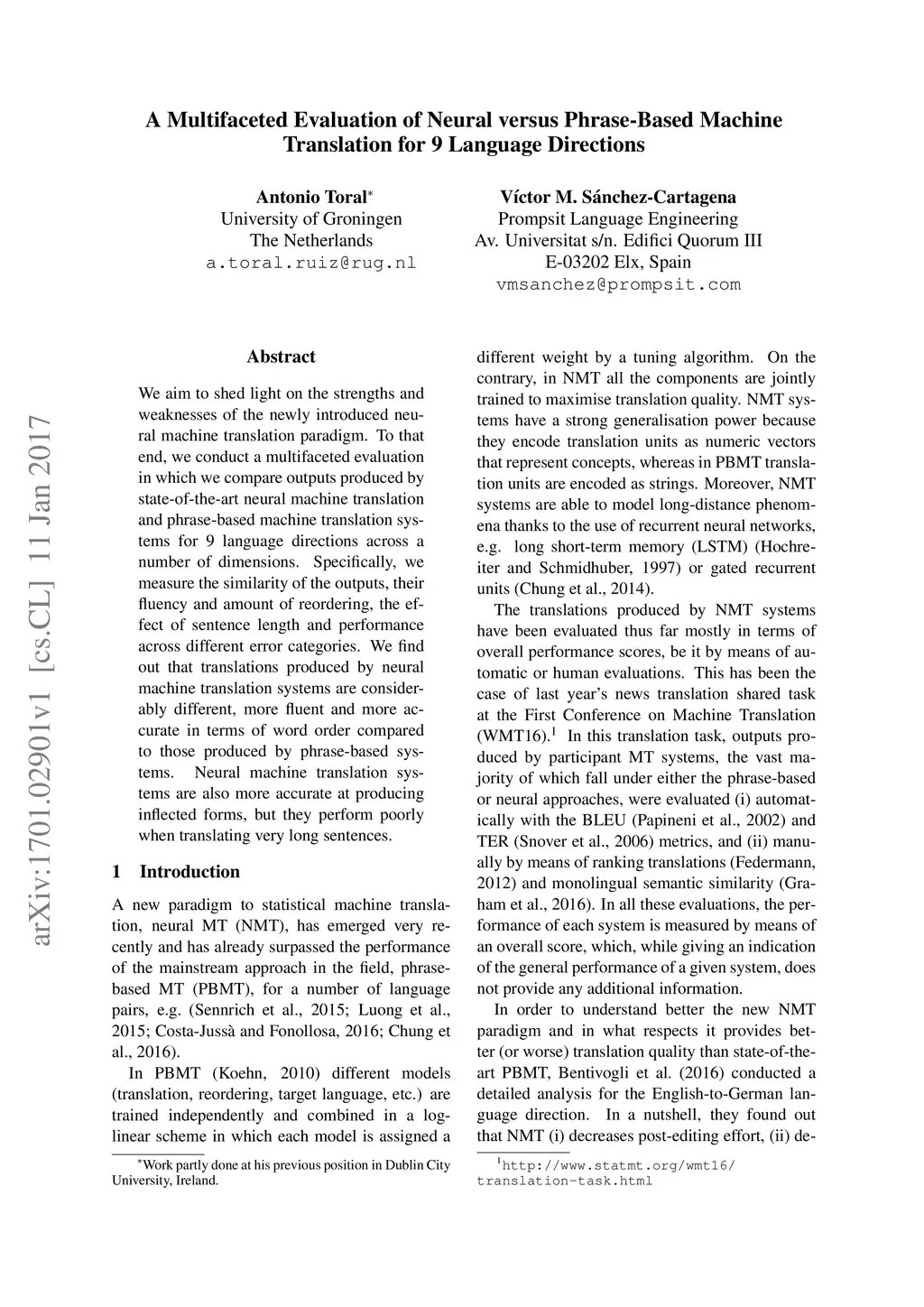 A Multifaceted Evaluation of Neural versus Phrase-Based Machine