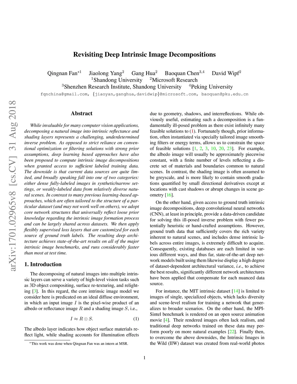 While invaluable for many computer vision applications, decomposing a natural image into intrinsic reflectance and shading layers represents a challenging, underdetermined inverse problem. As opposed to strict reliance on conventional optimization or filtering solutions with strong prior assumptions, deep learning based approaches have also been proposed to compute intrinsic image decompositions when granted access to sufficient labeled training data. The downside is that current data sources are quite limited, and broadly speaking fall into one of two categories: either dense fully-labeled images in synthetic/narrow settings, or weakly-labeled data from relatively diverse natural scenes. In contrast to many previous learning-based approaches, which are often tailored to the structure of a particular dataset (and may not work well on others), we adopt core network structures that universally reflect loose prior knowledge regarding the intrinsic image formation process and can be largely shared across datasets. We then apply flexibly supervised loss layers that are customized for each source of ground truth labels. The resulting deep architecture achieves state-of-the-art results on all of the major intrinsic image benchmarks, and runs considerably faster than most at test time.