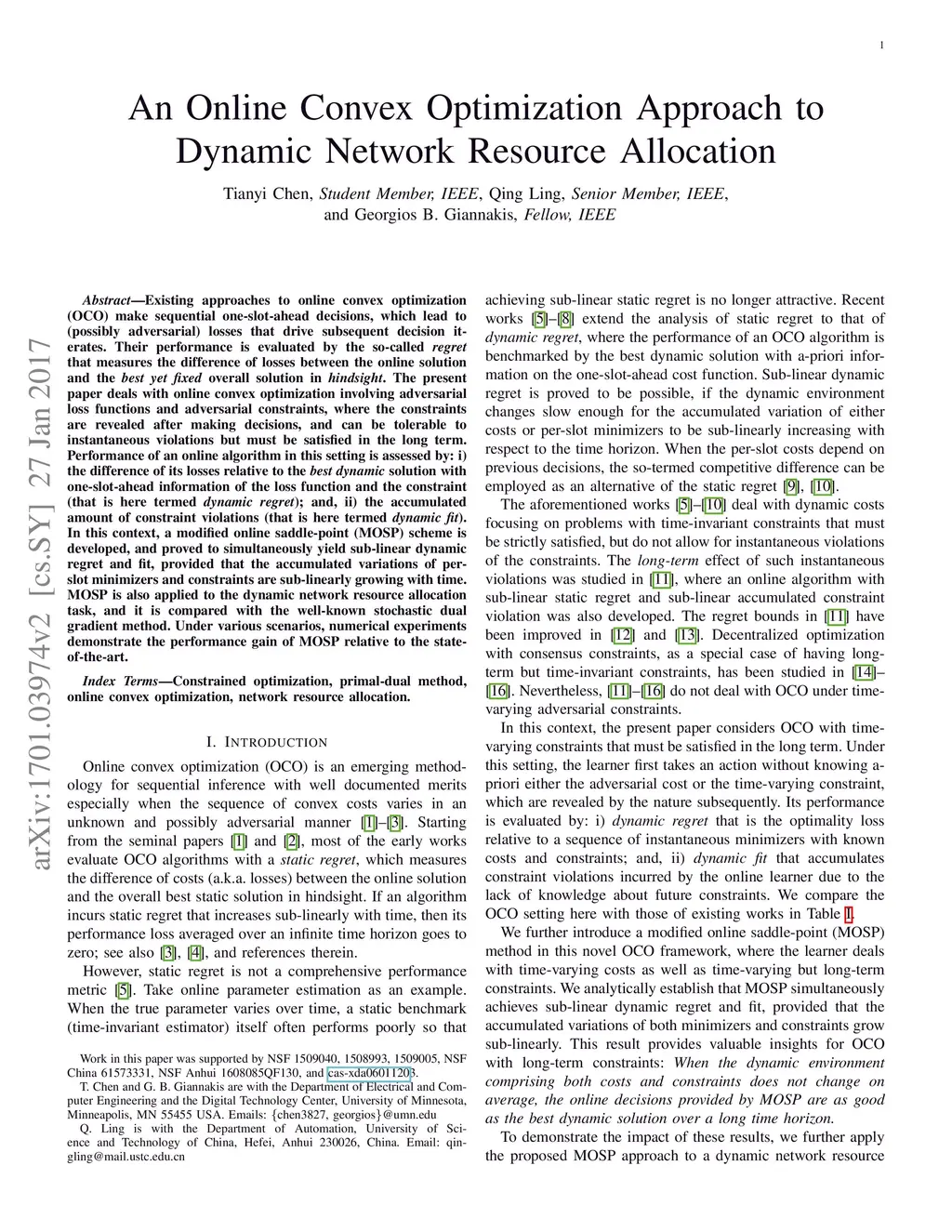 An Online Convex Optimization Approach to Dynamic Network Resource
