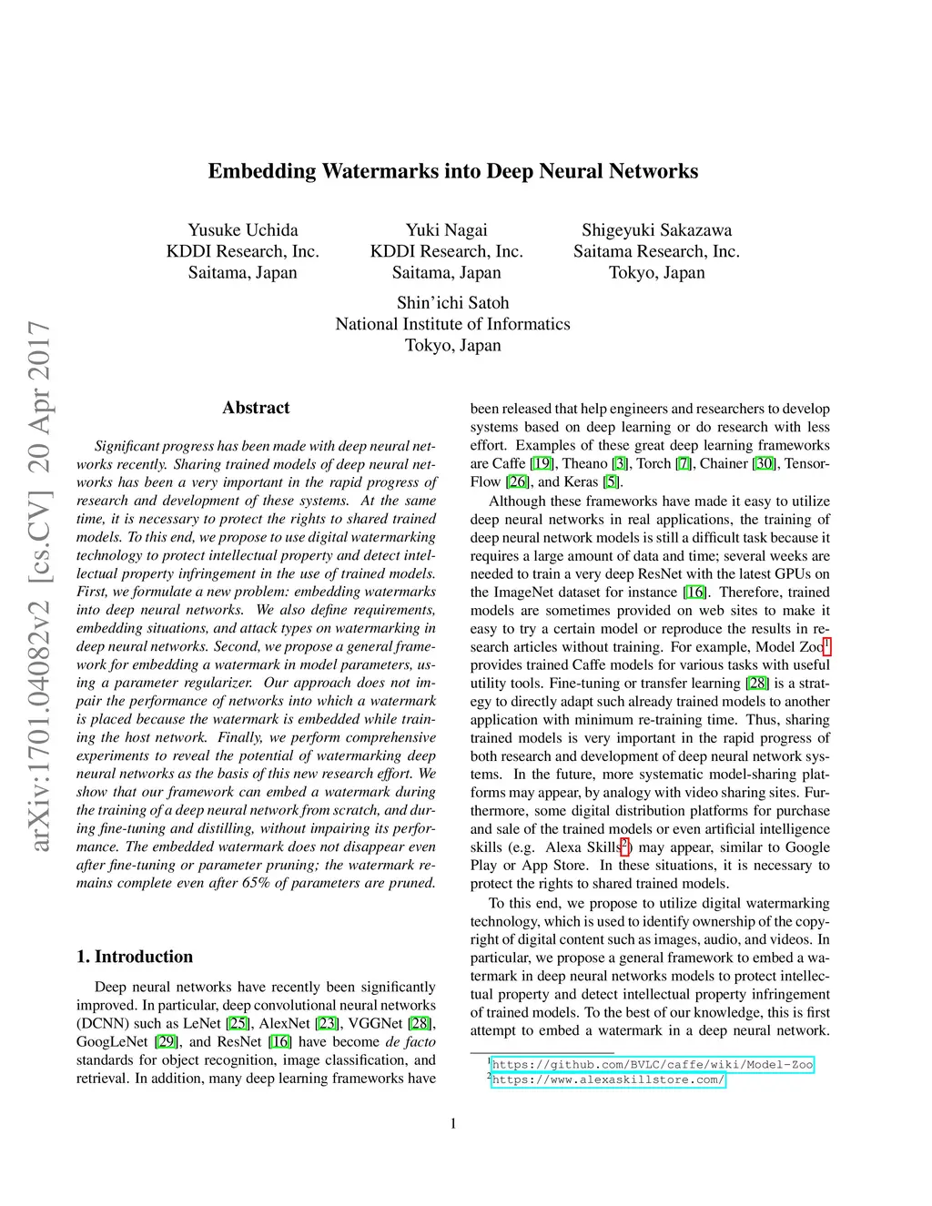 Embedding Watermarks into Deep Neural Networks