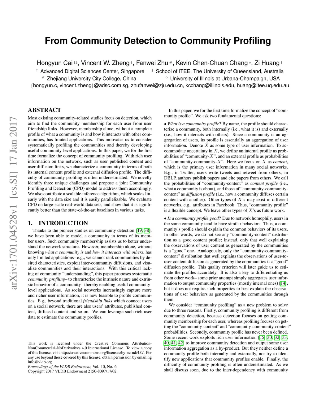 Most existing community-related studies focus on detection, which aim to find the community membership for each user from user friendship links. However, membership alone, without a complete profile of what a community is and how it interacts with other communities, has limited applications. This motivates us to consider systematically profiling the communities and thereby developing useful community-level applications. In this paper, we for the first time formalize the concept of community profiling. With rich user information on the network, such as user published content and user diffusion links, we characterize a community in terms of both its internal content profile and external diffusion profile. The difficulty of community profiling is often underestimated. We novelly identify three unique challenges and propose a joint Community Profiling and Detection (CPD) model to address them accordingly. We also contribute a scalable inference algorithm, which scales linearly with the data size and it is easily parallelizable. We evaluate CPD on large-scale real-world data sets, and show that it is significantly better than the state-of-the-art baselines in various tasks.