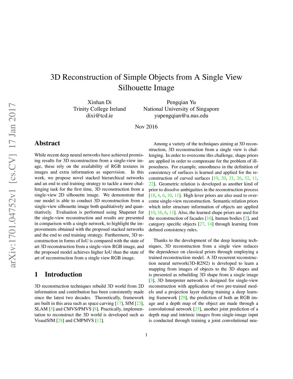 3D Reconstruction of Simple Objects from A Single View Silhouette Image