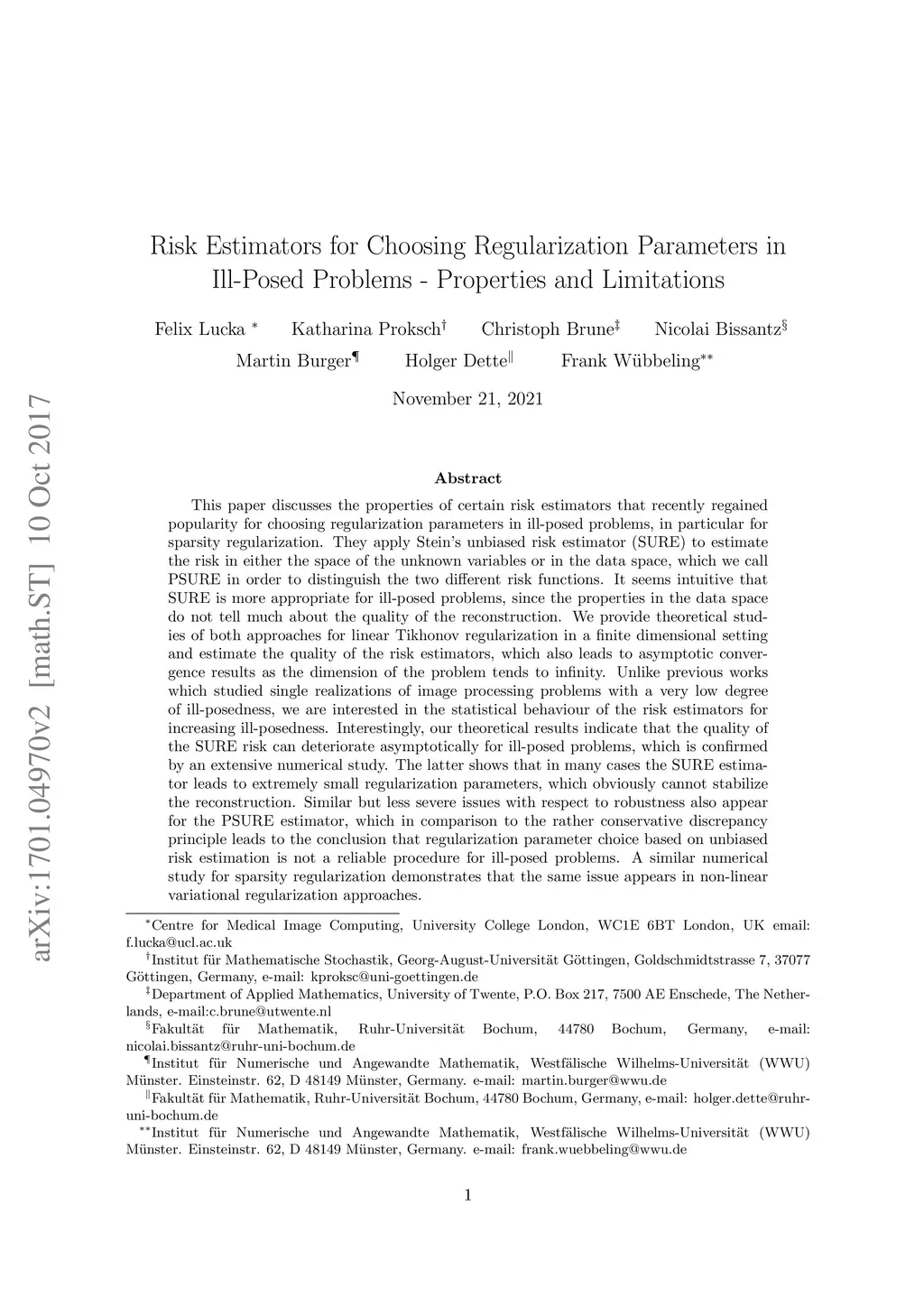 Risk Estimators for Choosing Regularization Parameters in Ill-Posed