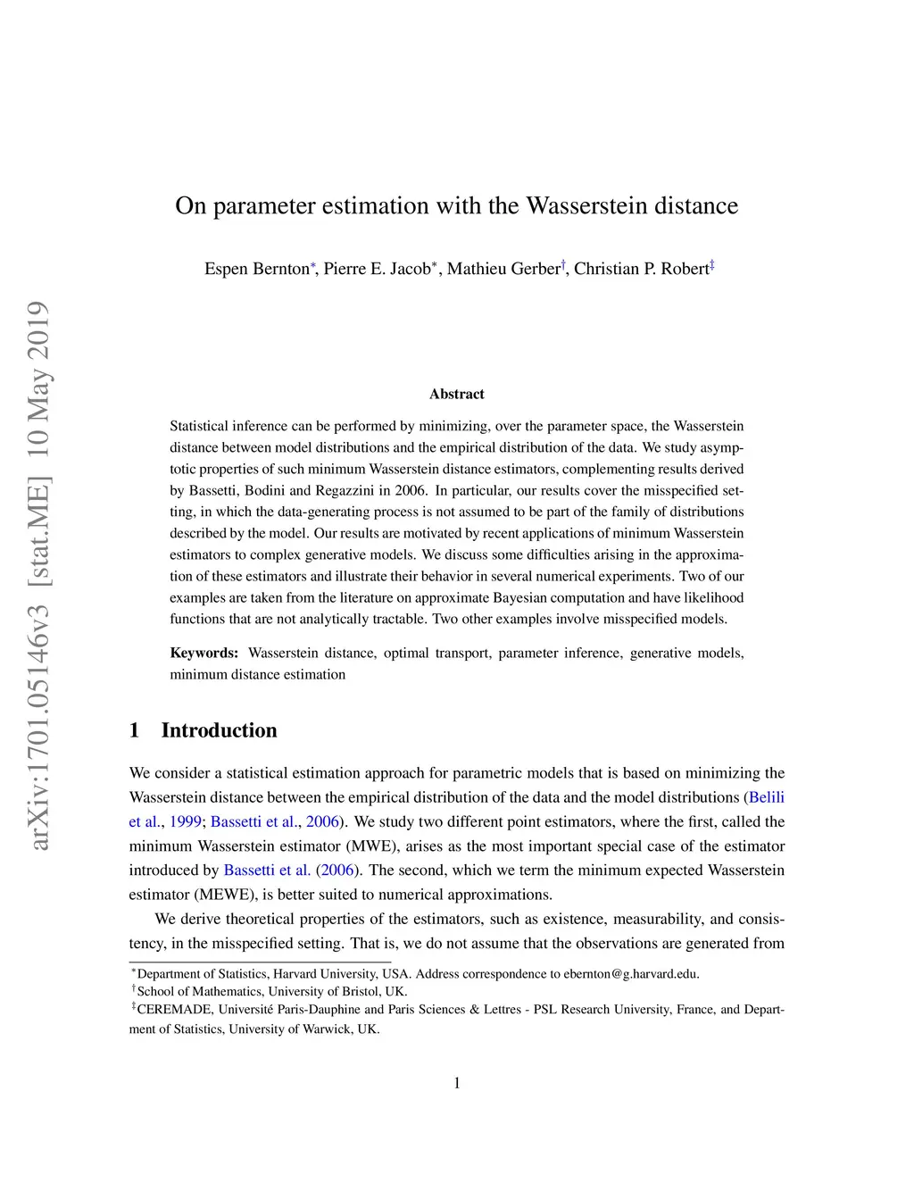 On parameter estimation with the Wasserstein distance
