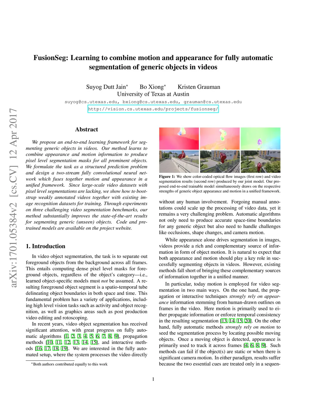 FusionSeg: Learning to combine motion and appearance for fully automatic
