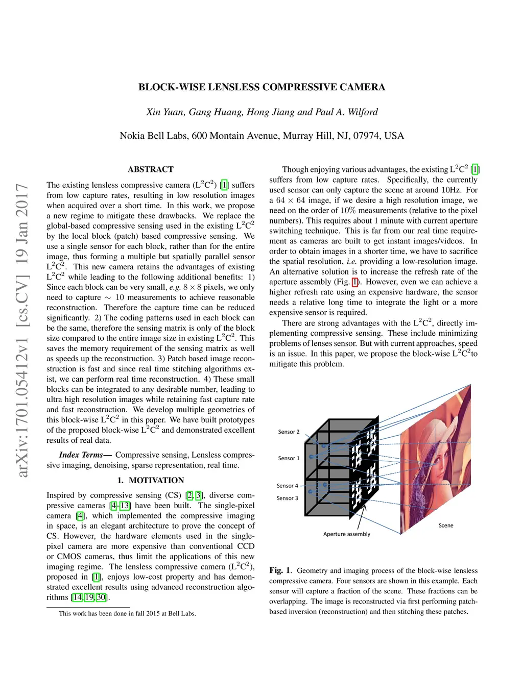 The existing lensless compressive camera ()~\cite{Huang13ICIP} suffers from low capture rates, resulting in low resolution images when acquired over a short time. In this work, we propose a new regime to mitigate these drawbacks. We replace the global-based compressive sensing used in the existing by the local block (patch) based compressive sensing. We use a single sensor for each block, rather than for the entire image, thus forming a multiple but spatially parallel sensor . This new camera retains the advantages of existing while leading to the following additional benefits: 1) Since each block can be very small, {\em e.g.} pixels, we only need to capture measurements to achieve reasonable reconstruction. Therefore the capture time can be reduced significantly. 2) The coding patterns used in each block can be the same, therefore the sensing matrix is only of the block size compared to the entire image size in existing . This saves the memory requirement of the sensing matrix as well as speeds up the reconstruction. 3) Patch based image reconstruction is fast and since real time stitching algorithms exist, we can perform real time reconstruction. 4) These small blocks can be integrated to any desirable number, leading to ultra high resolution images while retaining fast capture rate and fast reconstruction. We develop multiple geometries of this block-wise in this paper. We have built prototypes of the proposed block-wise and demonstrated excellent results of real data.