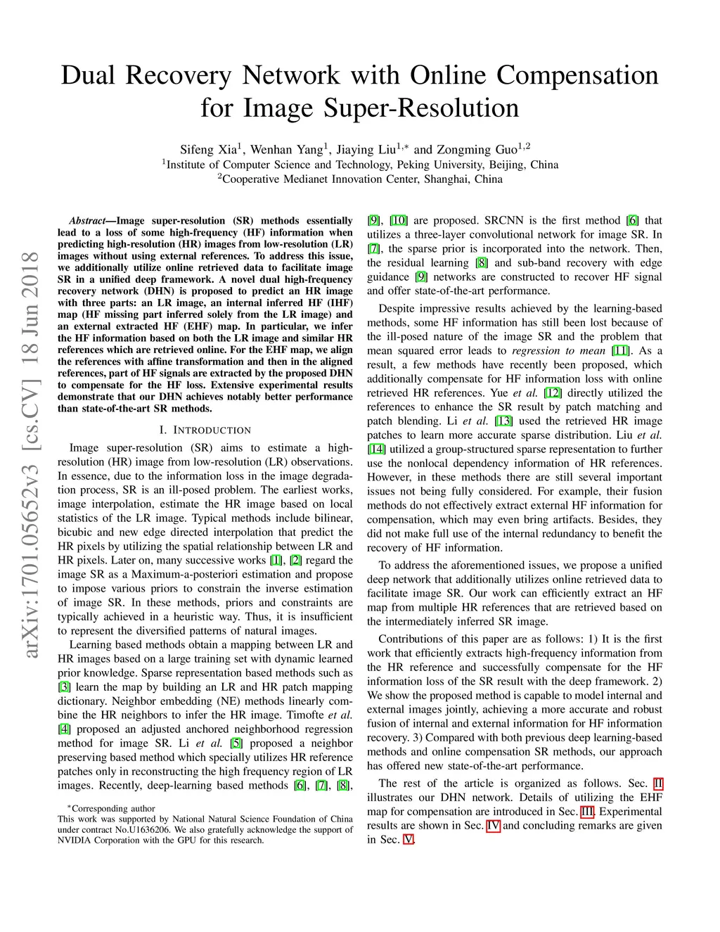 Image super-resolution (SR) methods essentially lead to a loss of some high-frequency (HF) information when predicting high-resolution (HR) images from low-resolution (LR) images without using external references. To address this issue, we additionally utilize online retrieved data to facilitate image SR in a unified deep framework. A novel dual high-frequency recovery network (DHN) is proposed to predict an HR image with three parts: an LR image, an internal inferred HF (IHF) map (HF missing part inferred solely from the LR image) and an external extracted HF (EHF) map. In particular, we infer the HF information based on both the LR image and similar HR references which are retrieved online. For the EHF map, we align the references with affine transformation and then in the aligned references, part of HF signals are extracted by the proposed DHN to compensate for the HF loss. Extensive experimental results demonstrate that our DHN achieves notably better performance than state-of-the-art SR methods.