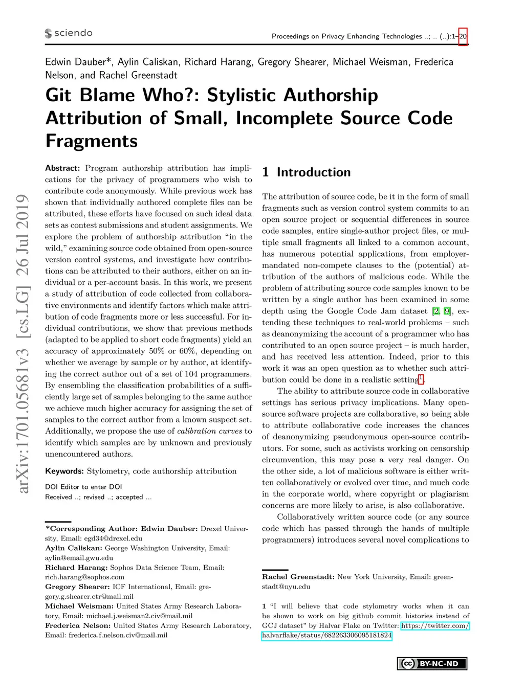 Git Blame Who?: Stylistic Authorship Attribution of Small, Incomplete