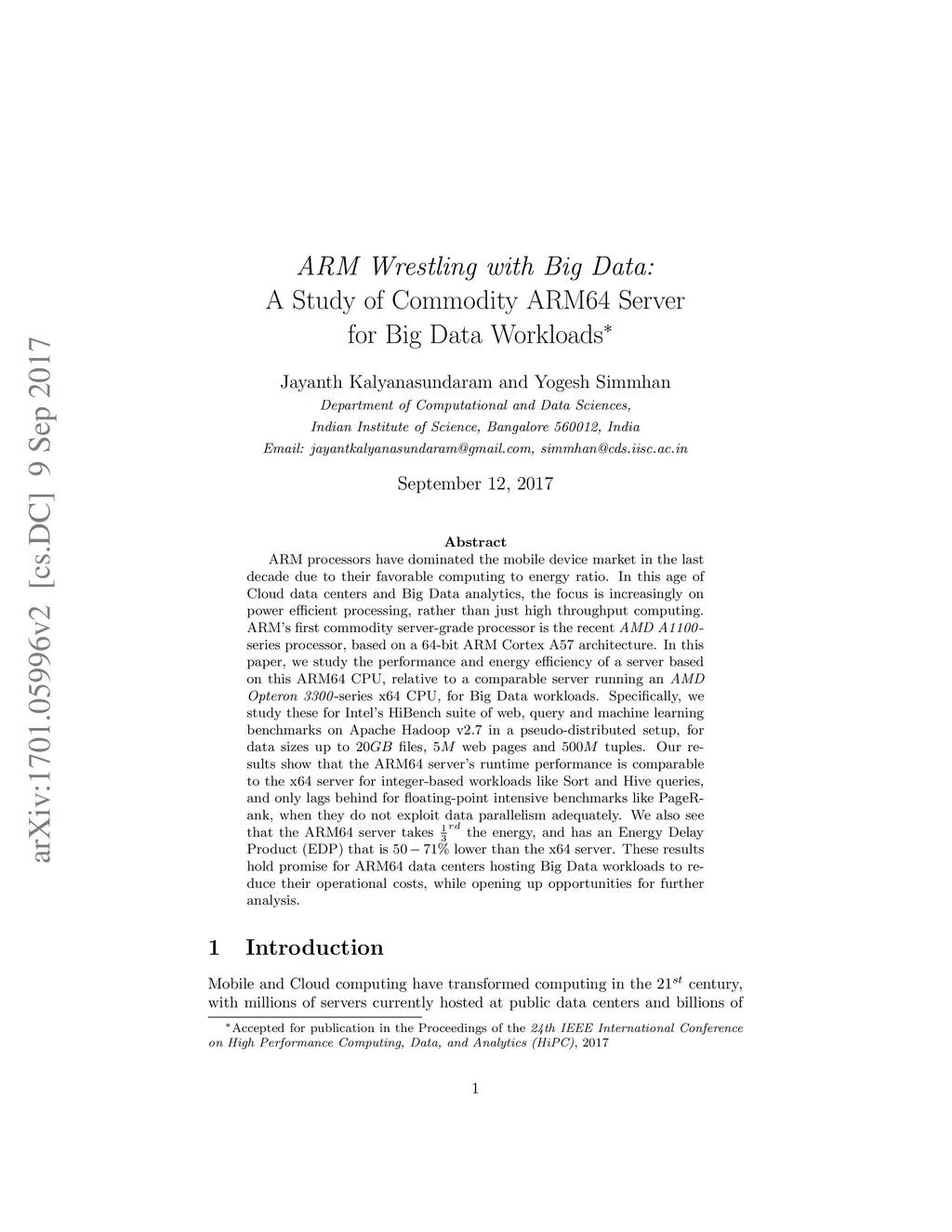ARM Wrestling with Big Data: A Study of Commodity ARM64 Server for Big