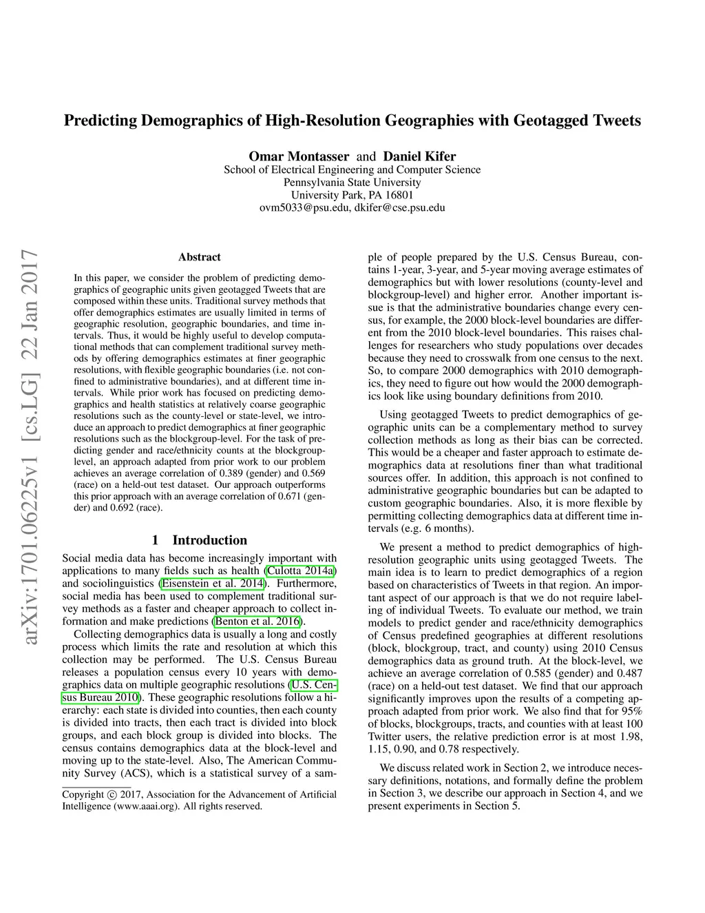 Predicting Demographics of High-Resolution Geographies with Geotagged