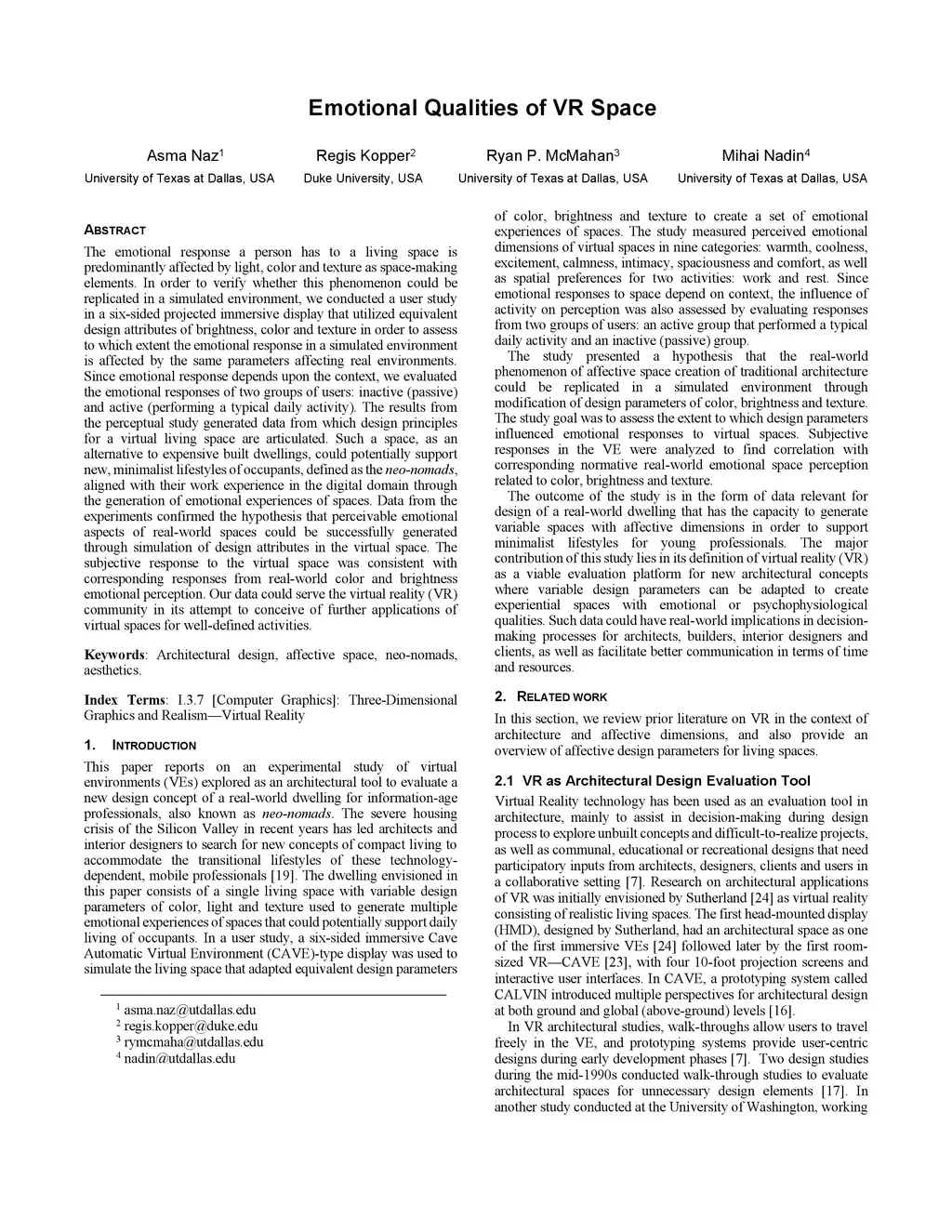 Emotional Qualities of VR Space