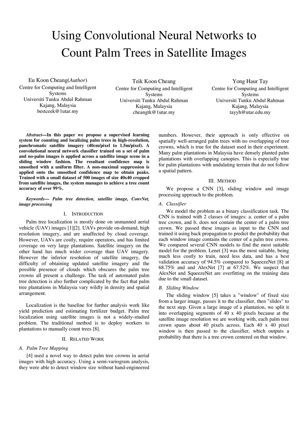 Using Convolutional Neural Networks to Count Palm Trees in Satellite