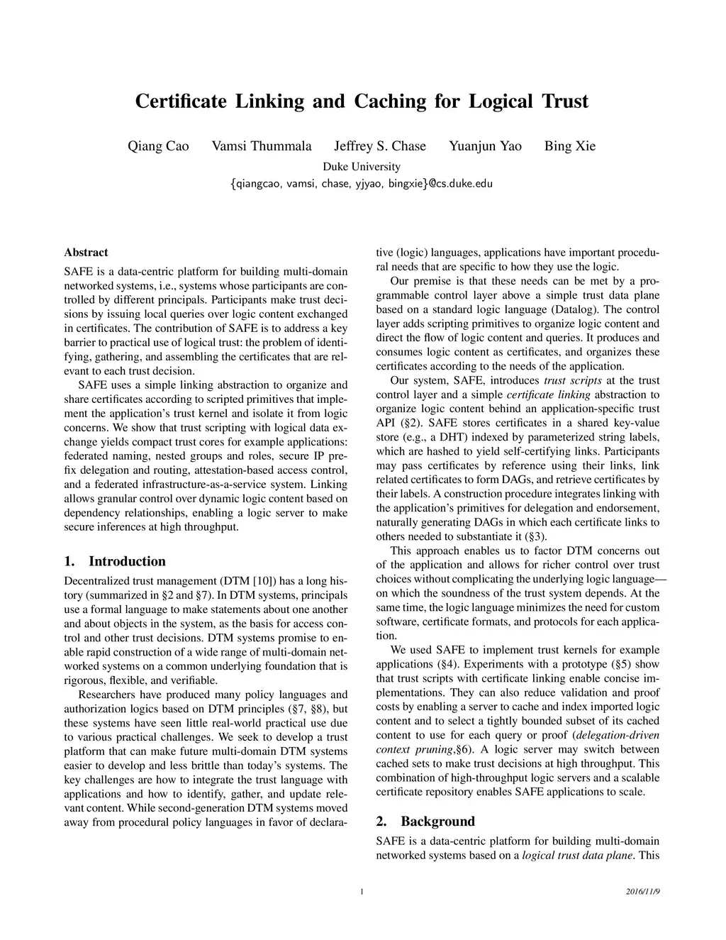 Certificate Linking and Caching for Logical Trust