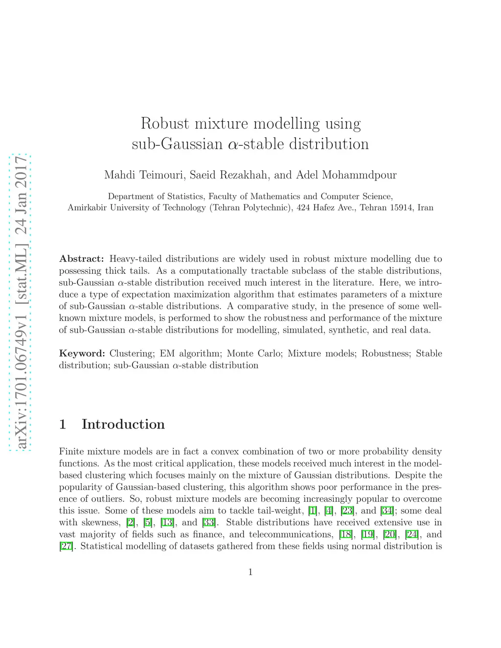 Robust mixture modelling using sub-Gaussian stable distribution