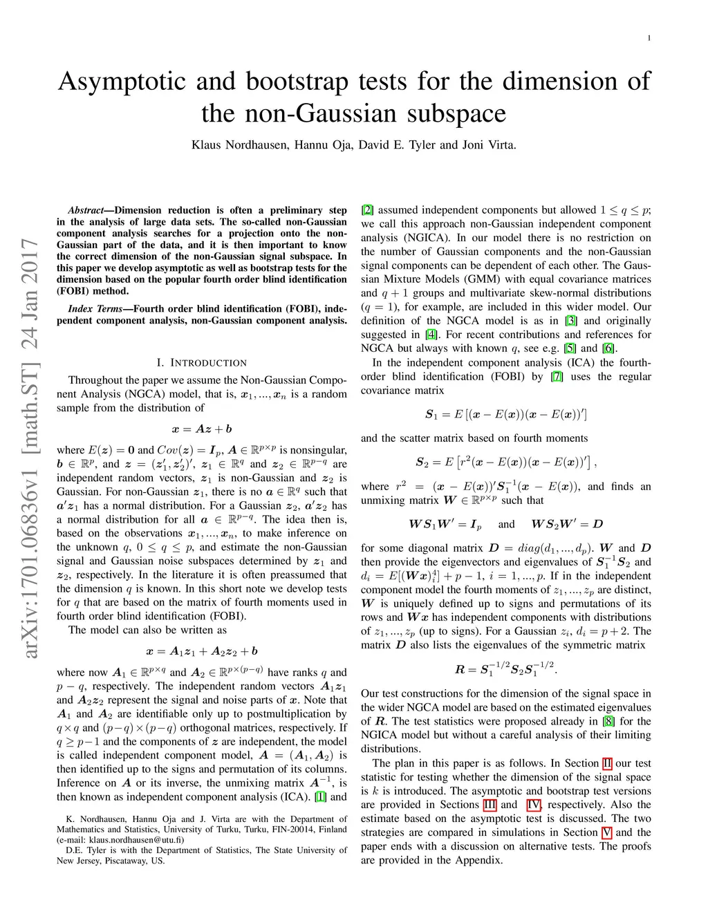 Asymptotic and bootstrap tests for the dimension of the non-Gaussian
