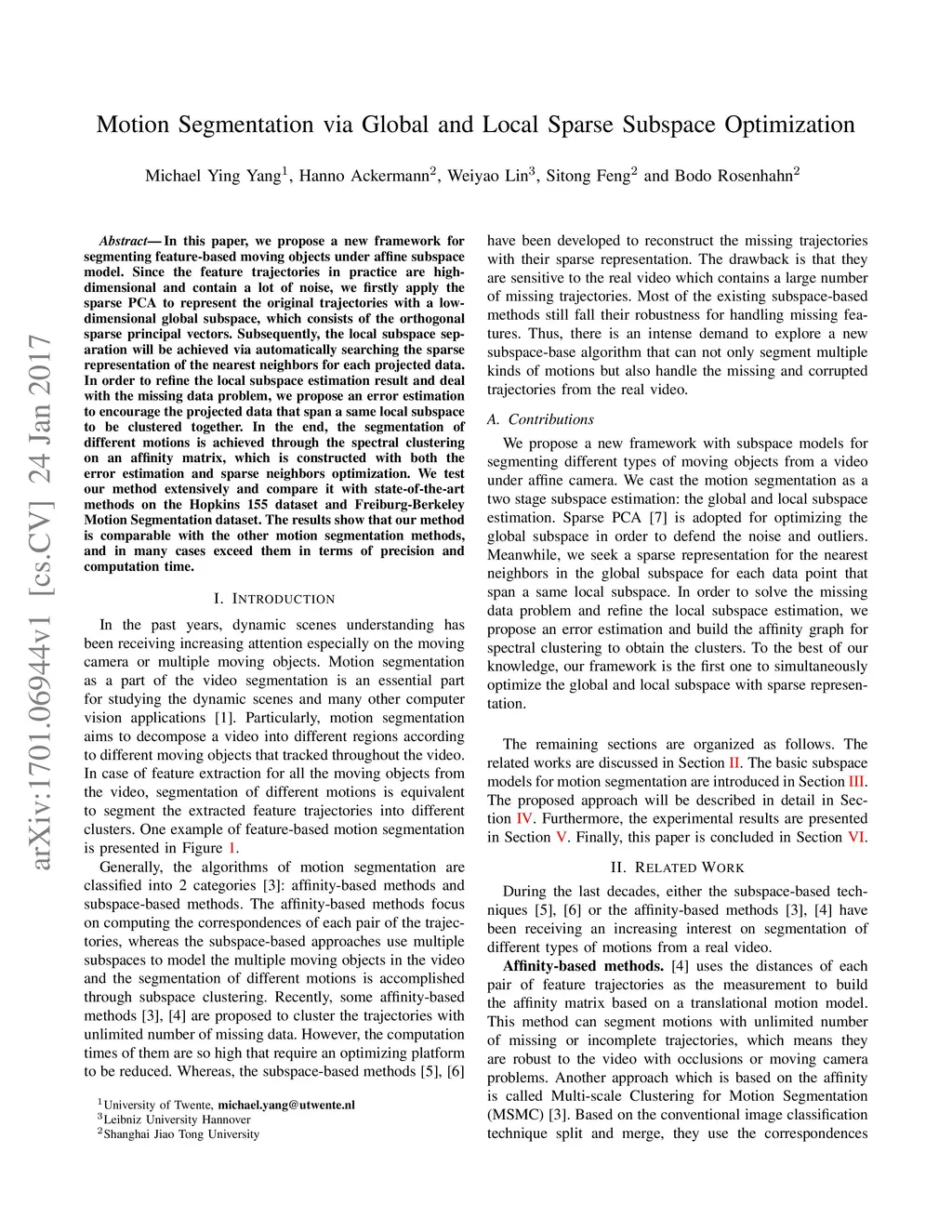 Motion Segmentation via Global and Local Sparse Subspace Optimization