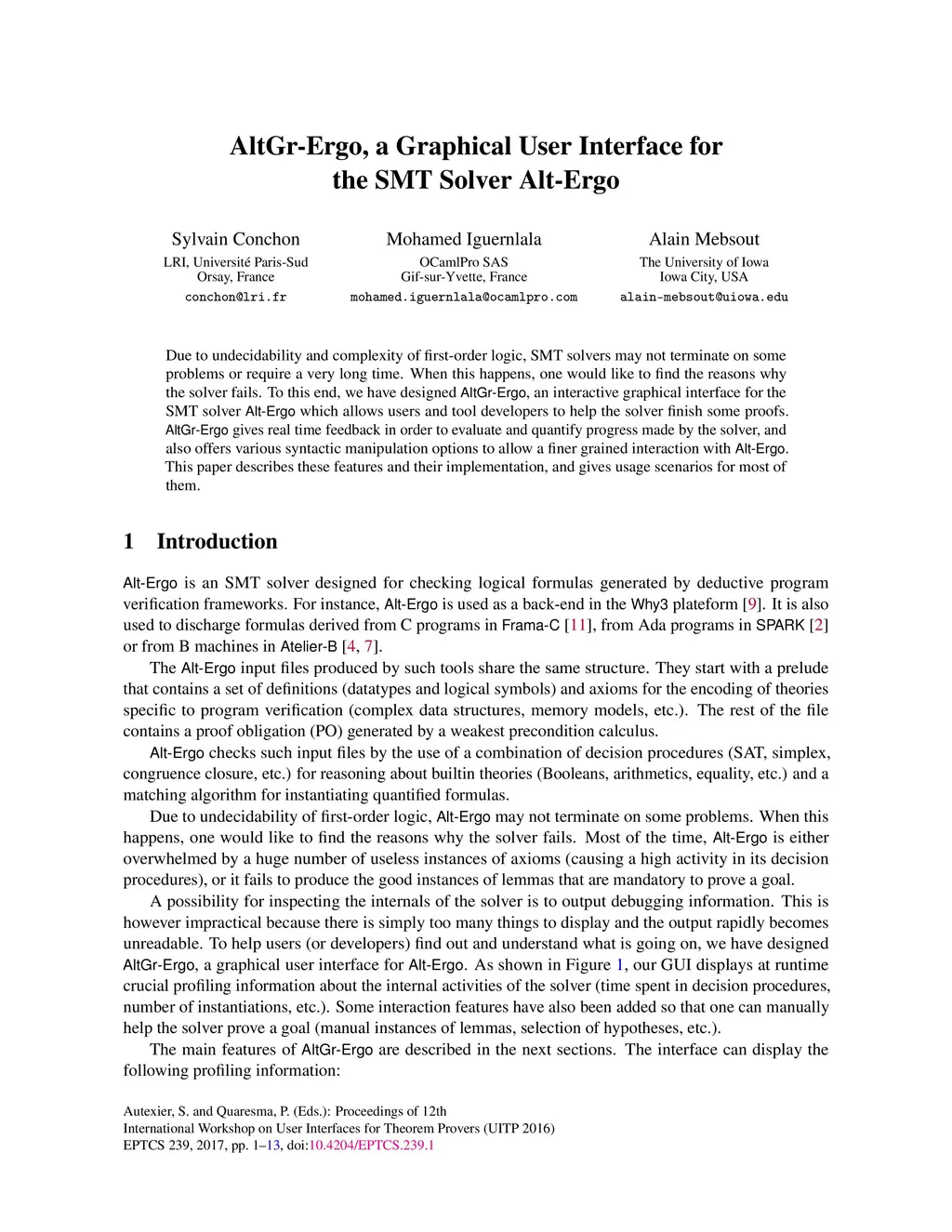 AltGr-Ergo, a Graphical User Interface for the SMT Solver Alt-Ergo