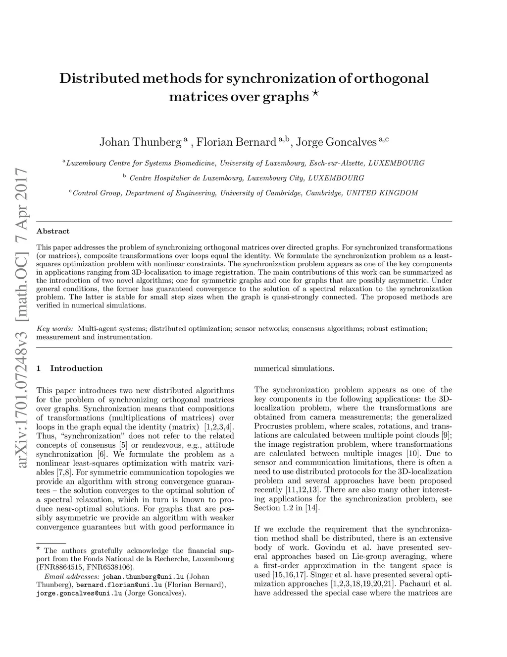 This paper addresses the problem of synchronizing orthogonal matrices over directed graphs. For synchronized transformations (or matrices), composite transformations over loops equal the identity. We formulate the synchronization problem as a least-squares optimization problem with nonlinear constraints. The synchronization problem appears as one of the key components in applications ranging from 3D-localization to image registration. The main contributions of this work can be summarized as the introduction of two novel algorithms; one for symmetric graphs and one for graphs that are possibly asymmetric. Under general conditions, the former has guaranteed convergence to the solution of a spectral relaxation to the synchronization problem. The latter is stable for small step sizes when the graph is quasi-strongly connected. The proposed methods are verified in numerical simulations.