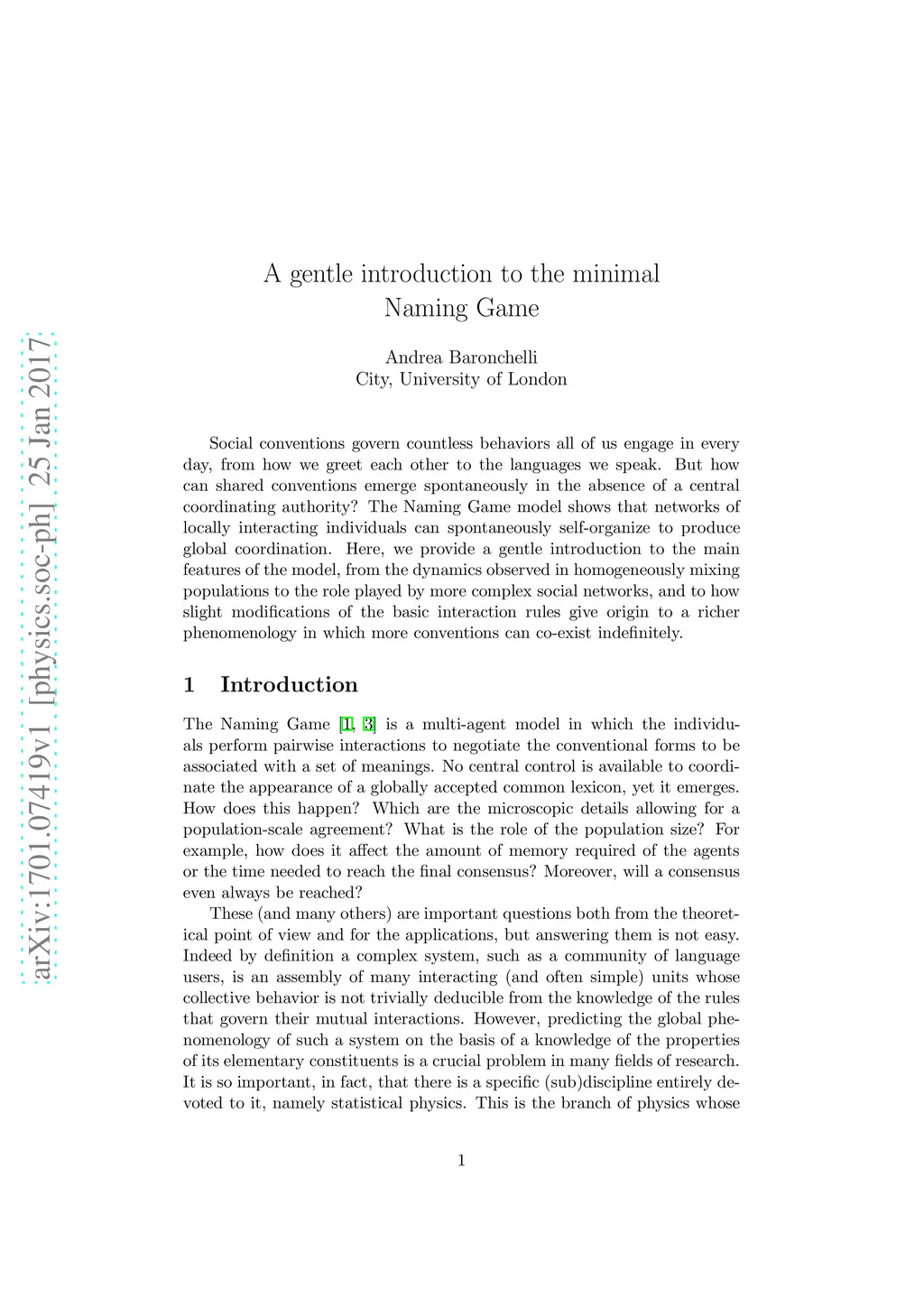 A gentle introduction to the minimal Naming Game