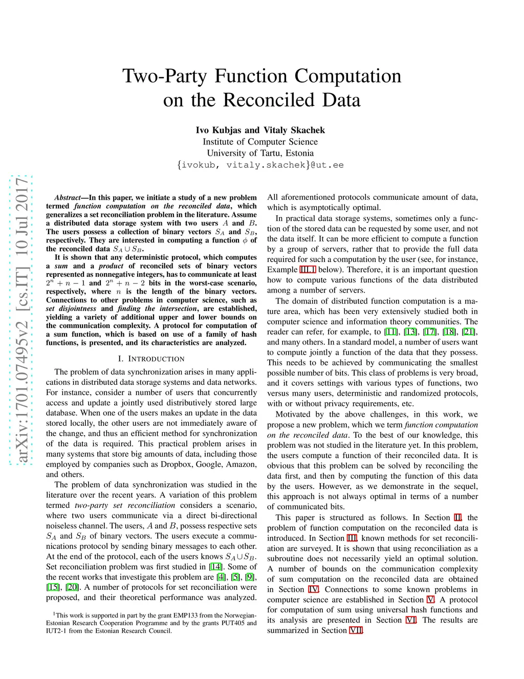 Two-Party Function Computation on the Reconciled Data