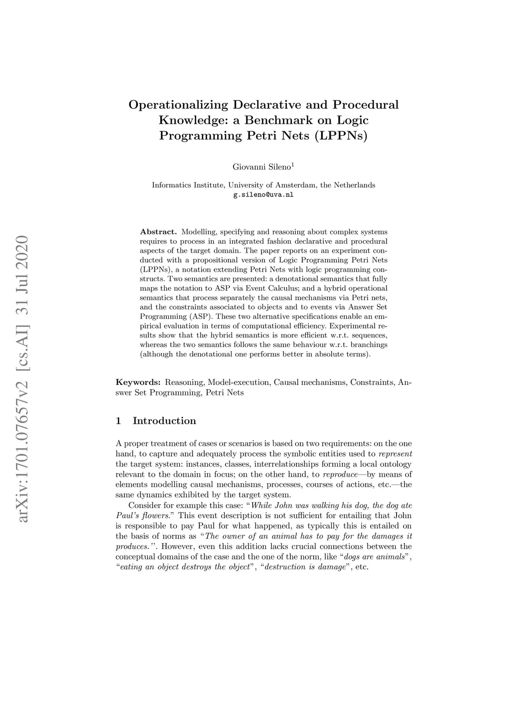Modelling, specifying and reasoning about complex systems requires to process in an integrated fashion declarative and procedural aspects of the target domain. The paper reports on an experiment conducted with a propositional version of Logic Programming Petri Nets (LPPNs), a notation extending Petri Nets with logic programming constructs. Two semantics are presented: a denotational semantics that fully maps the notation to ASP via Event Calculus; and a hybrid operational semantics that process separately the causal mechanisms via Petri nets, and the constraints associated to objects and to events via Answer Set Programming (ASP). These two alternative specifications enable an empirical evaluation in terms of computational efficiency. Experimental results show that the hybrid semantics is more efficient w.r.t. sequences, whereas the two semantics follows the same behaviour w.r.t. branchings (although the denotational one performs better in absolute terms).