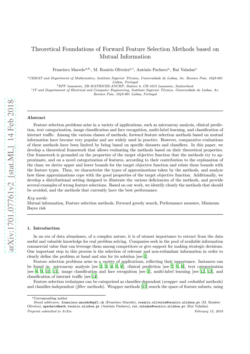 Theoretical Foundations of Forward Feature Selection Methods based on