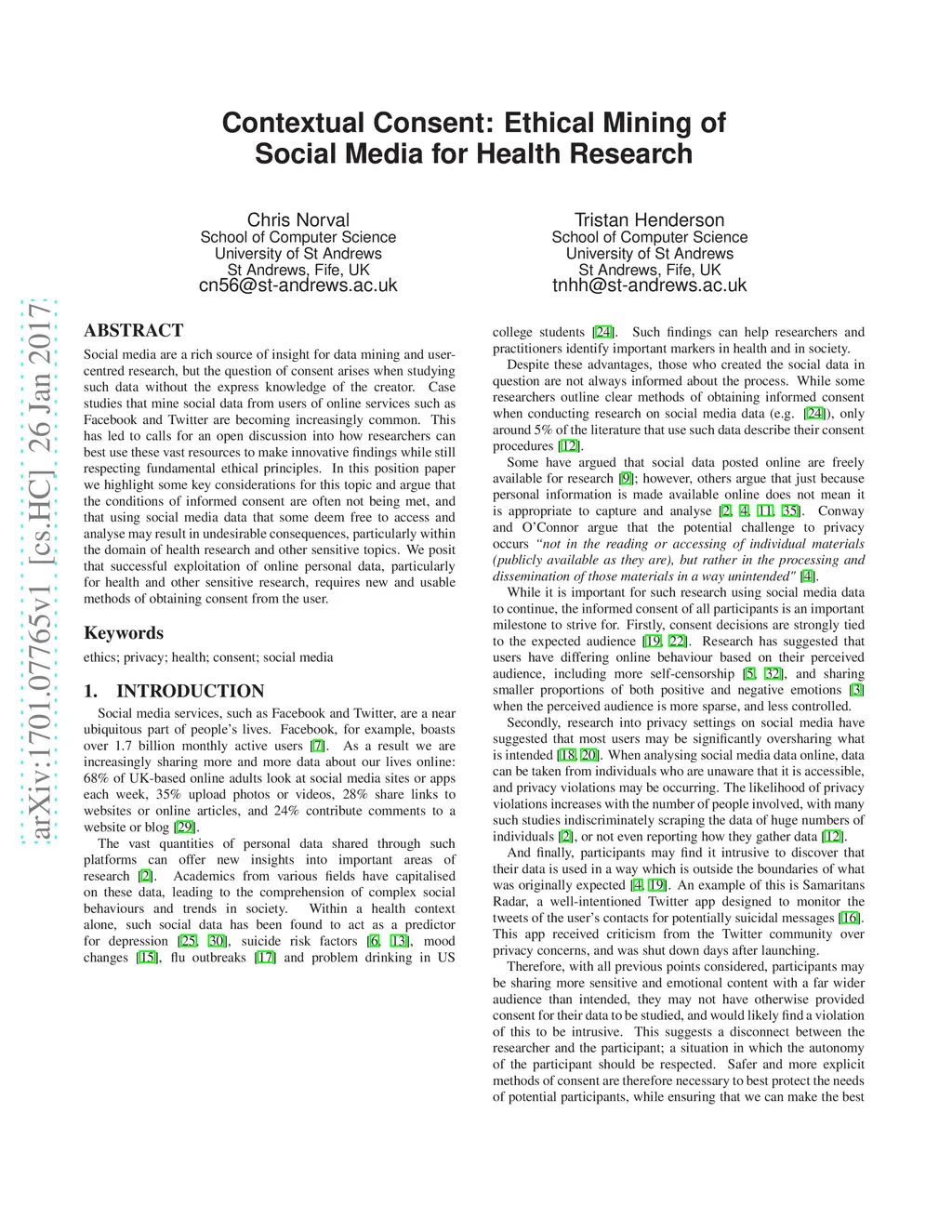 Contextual Consent: Ethical Mining of Social Media for Health Research