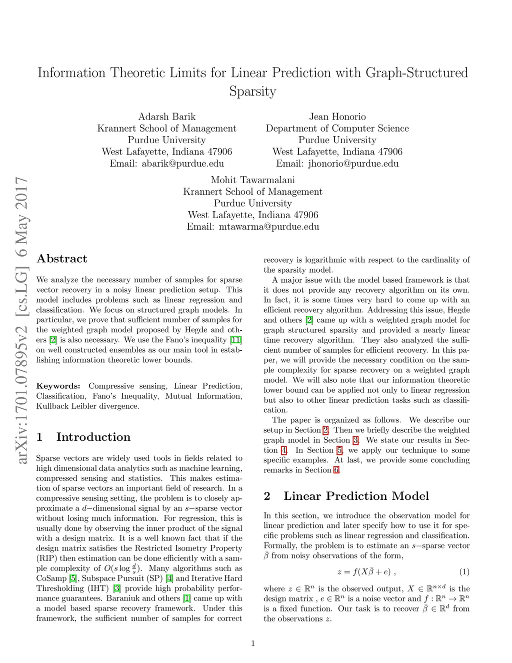 Information Theoretic Limits for Linear Prediction with Graph-Structured