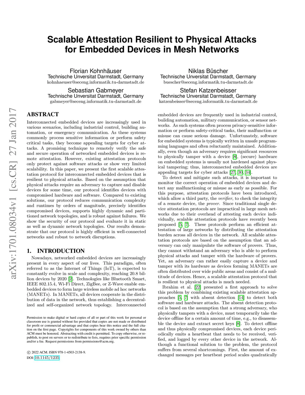 Scalable Attestation Resilient to Physical Attacks for Embedded Devices