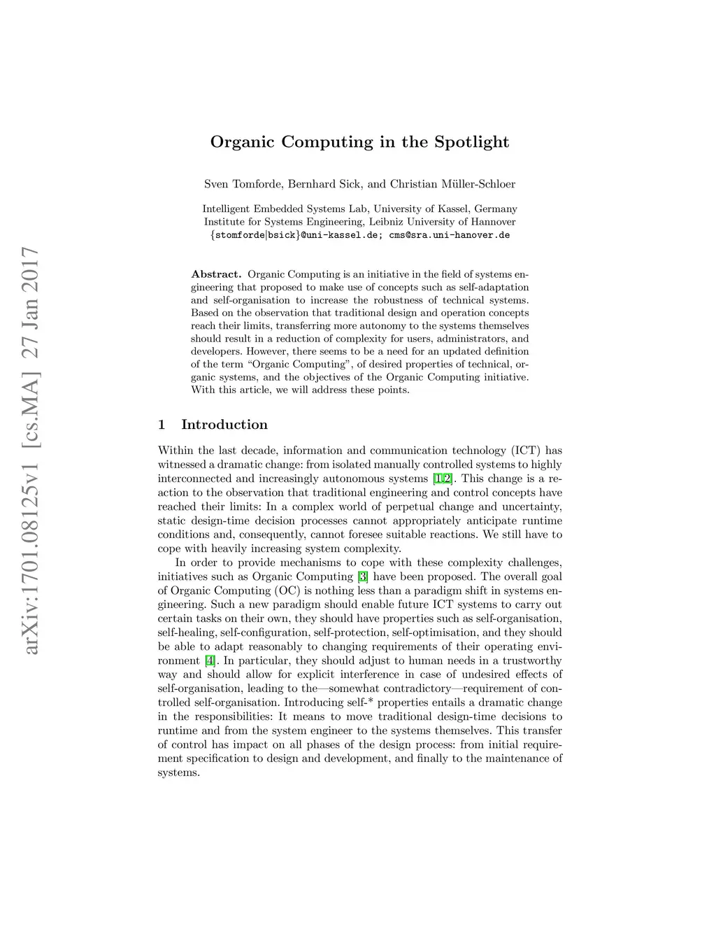 Organic Computing in the Spotlight
