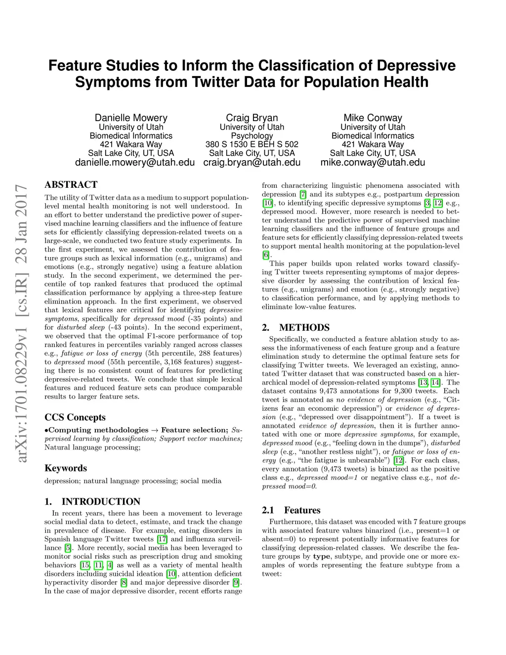 Feature Studies to Inform the Classification of Depressive Symptoms from