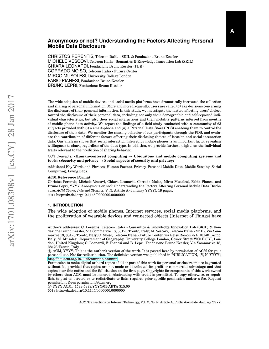 Anonymous or not? Understanding the Factors Affecting Personal Mobile