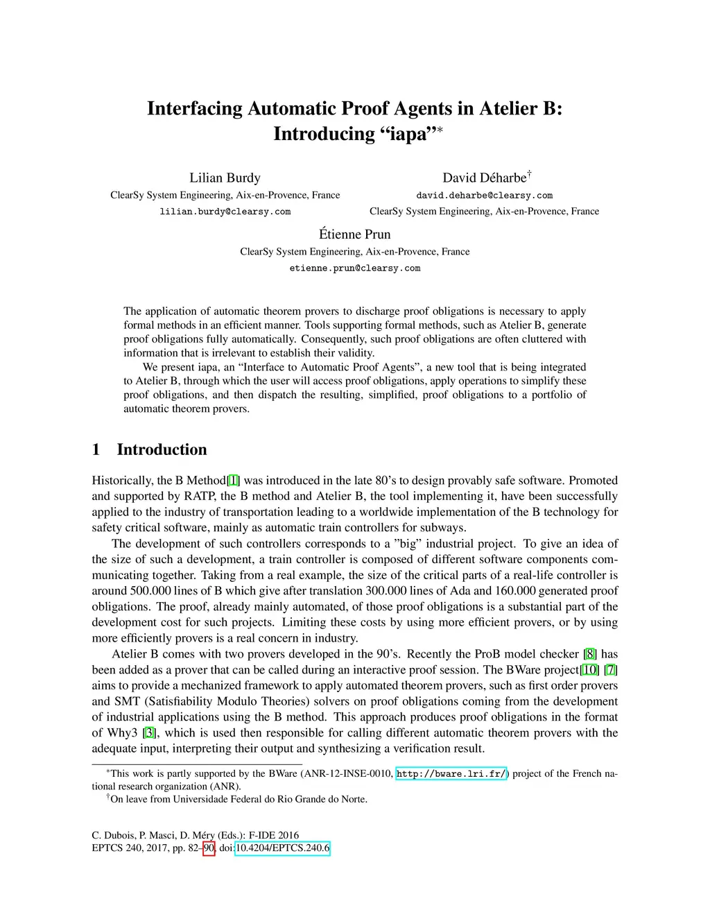 The application of automatic theorem provers to discharge proof obligations is necessary to apply formal methods in an efficient manner. Tools supporting formal methods, such as Atelier~B, generate proof obligations fully automatically. Consequently, such proof obligations are often cluttered with information that is irrelevant to establish their validity. We present iapa, an "Interface to Automatic Proof Agents", a new tool that is being integrated to Atelier~B, through which the user will access proof obligations, apply operations to simplify these proof obligations, and then dispatch the resulting, simplified, proof obligations to a portfolio of automatic theorem provers.