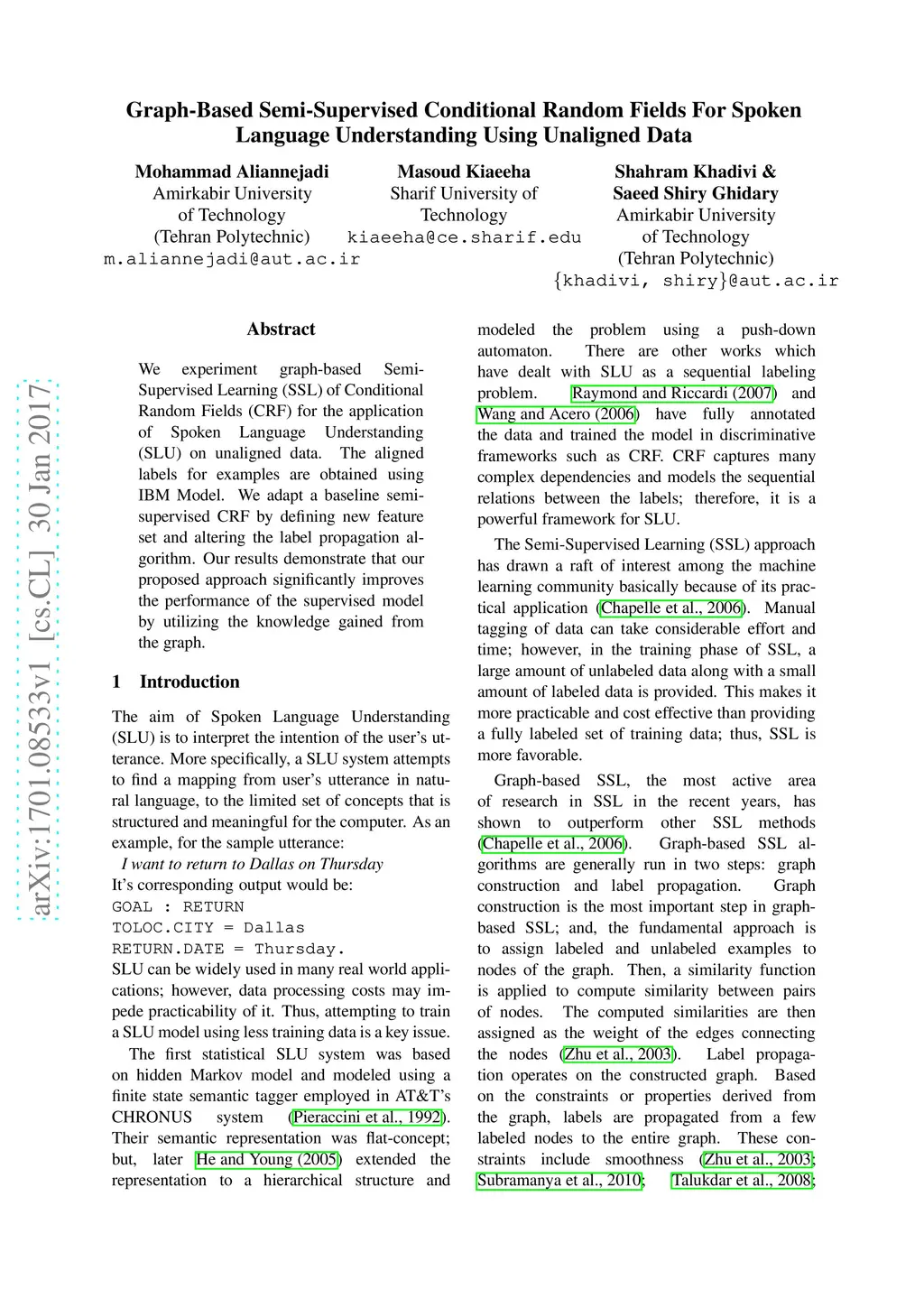 Graph-Based Semi-Supervised Conditional Random Fields For Spoken