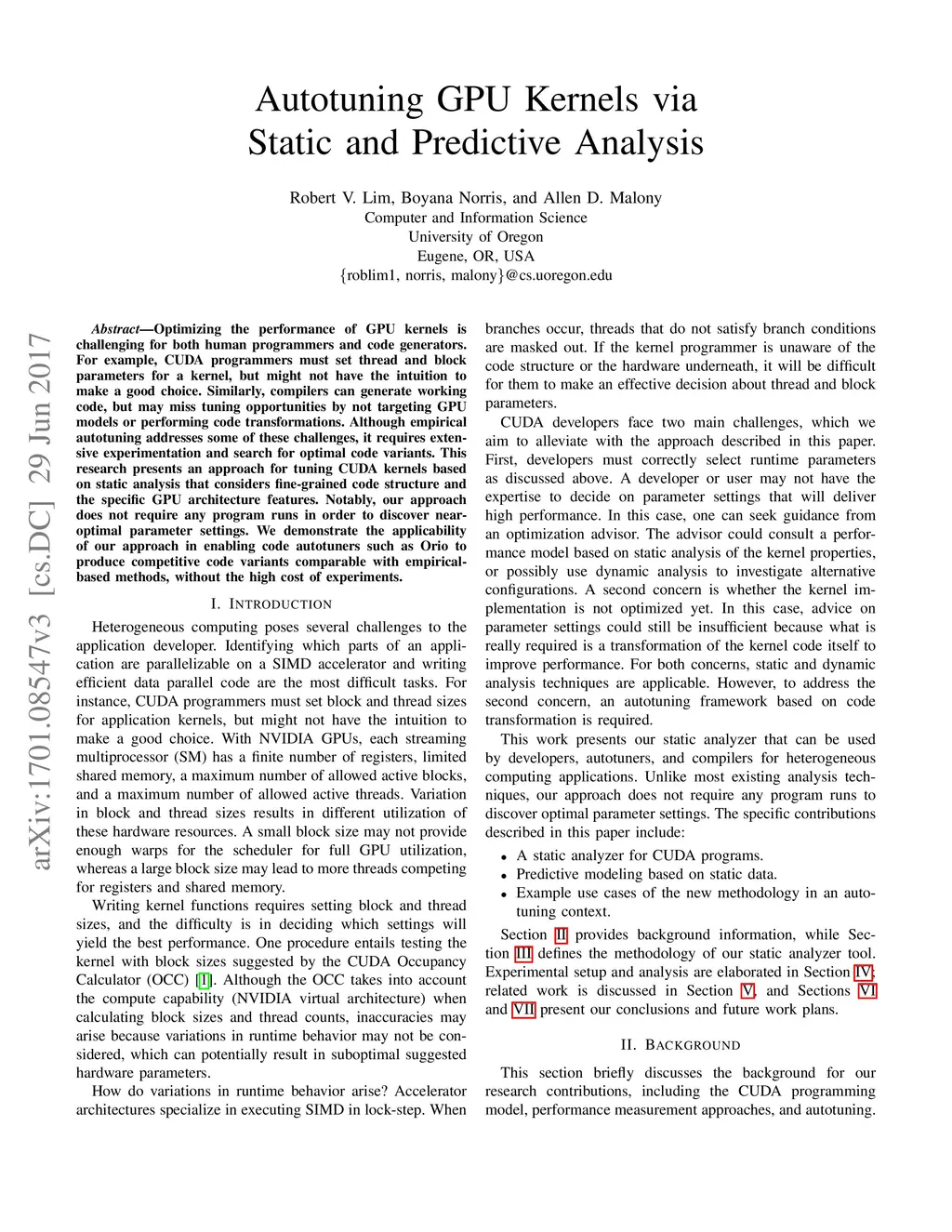 Autotuning GPU Kernels via Static and Predictive Analysis
