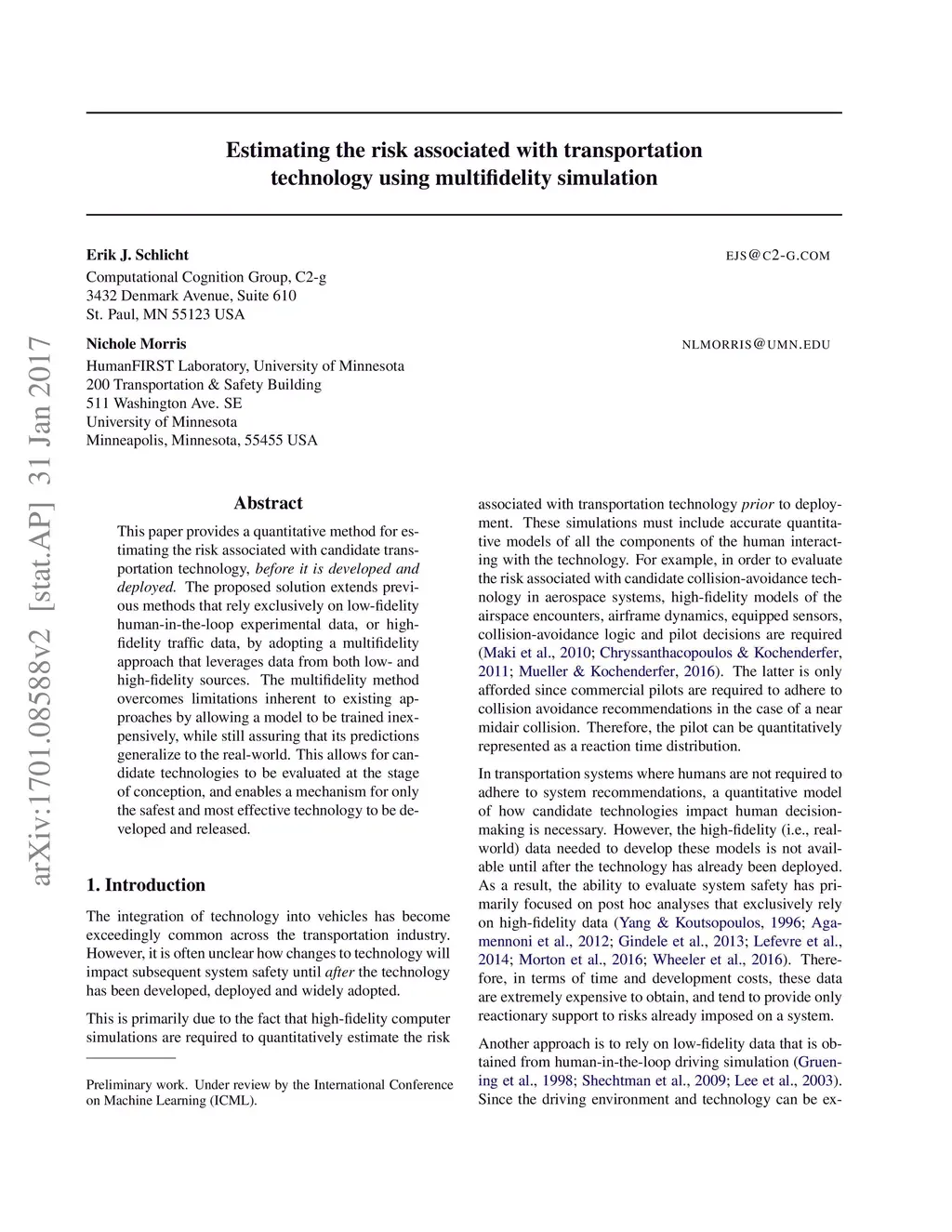 Estimating the risk associated with transportation technology using multifidelity simulation