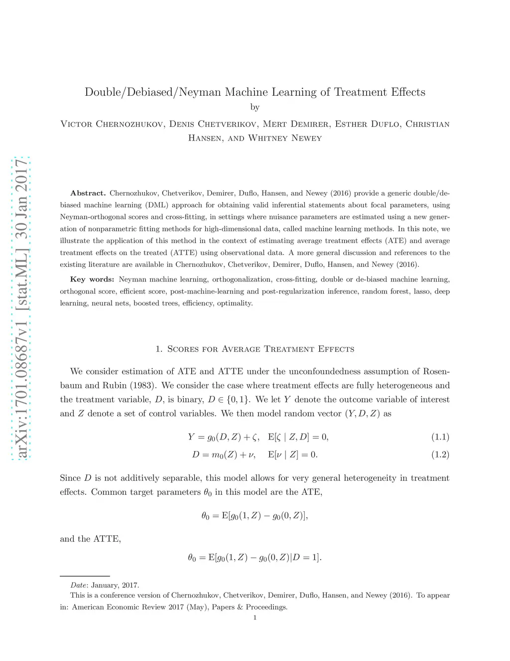 Double/Debiased/Neyman Machine Learning of Treatment Effects