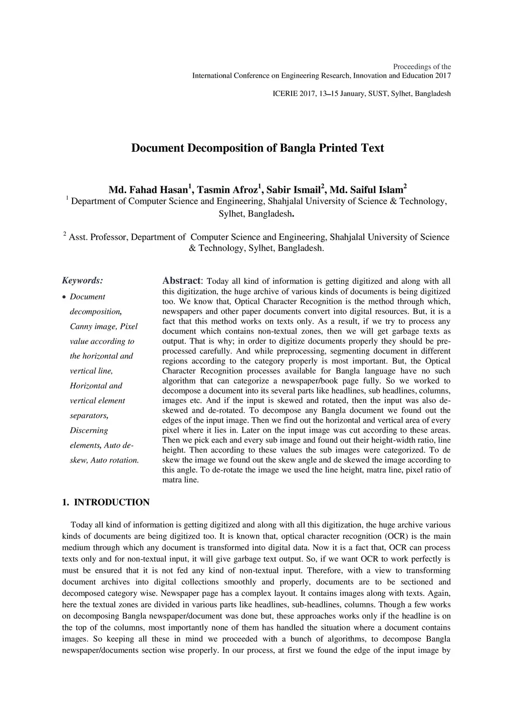 Document Decomposition of Bangla Printed Text