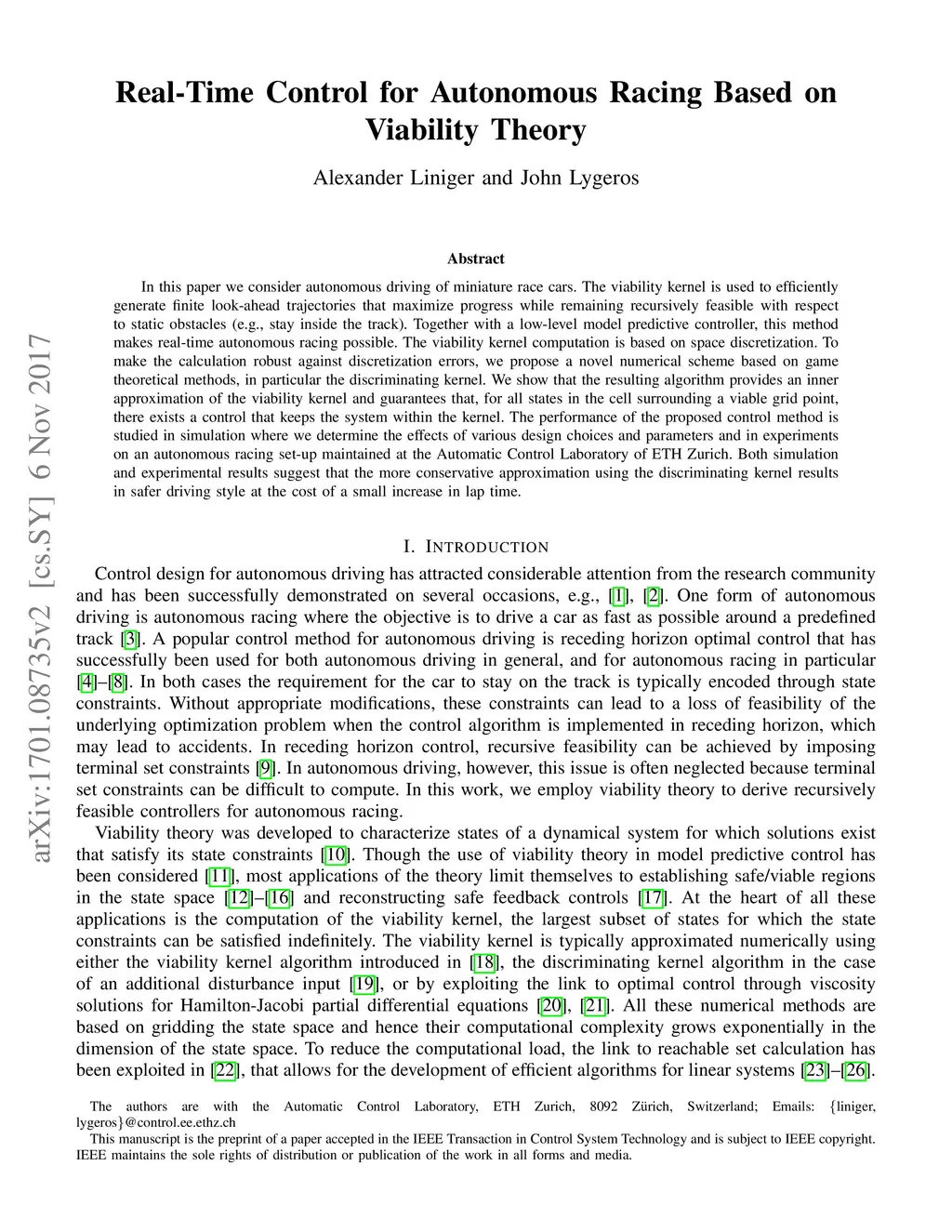 Real-Time Control for Autonomous Racing Based on Viability Theory
