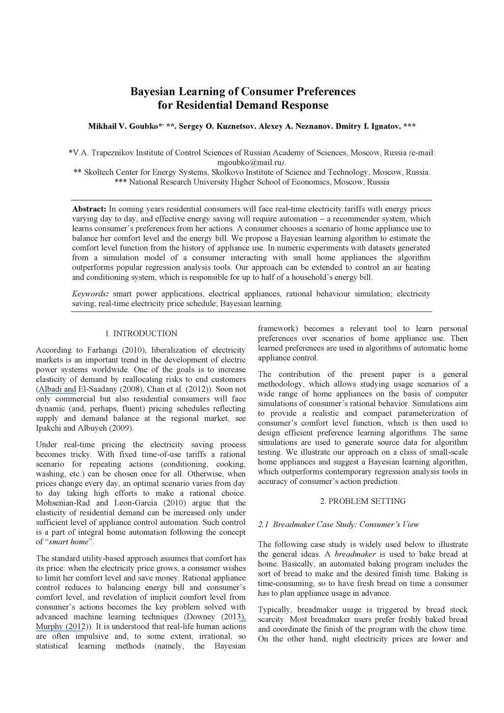 Bayesian Learning of Consumer Preferences for Residential Demand