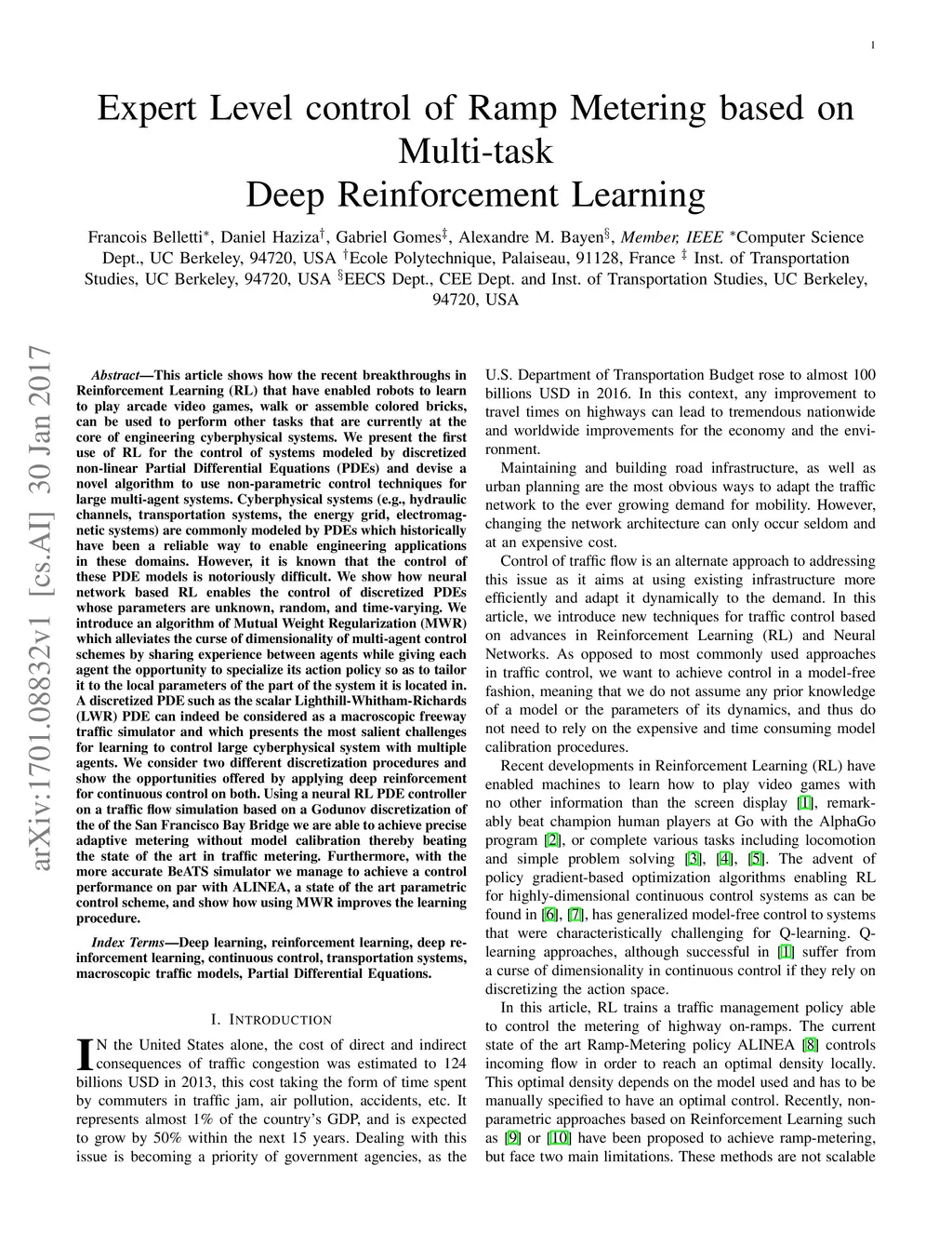 Expert Level control of Ramp Metering based on Multi-task Deep