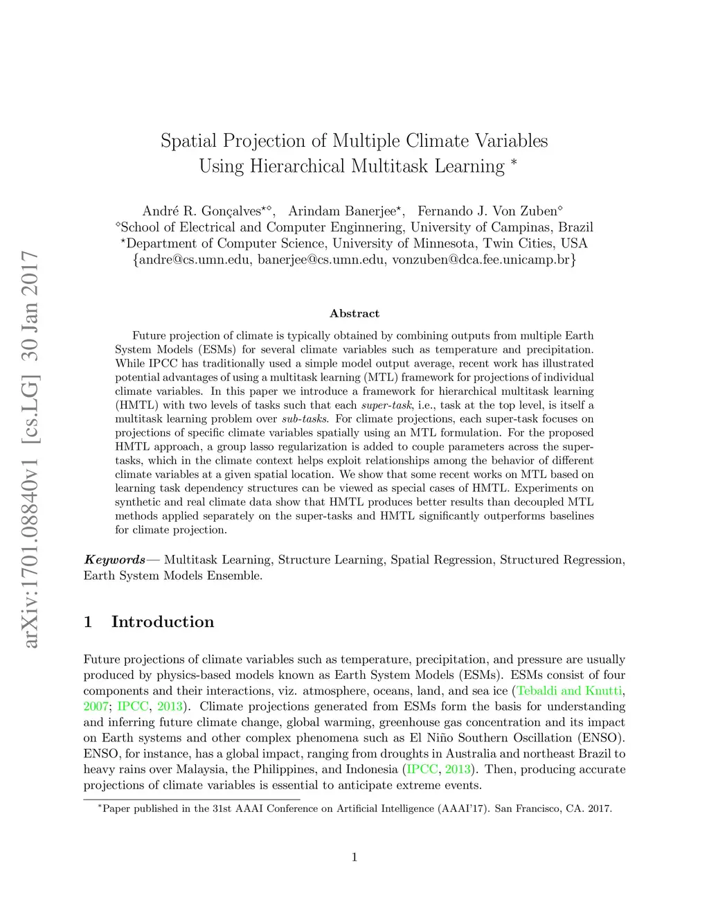 Spatial Projection of Multiple Climate Variables using Hierarchical