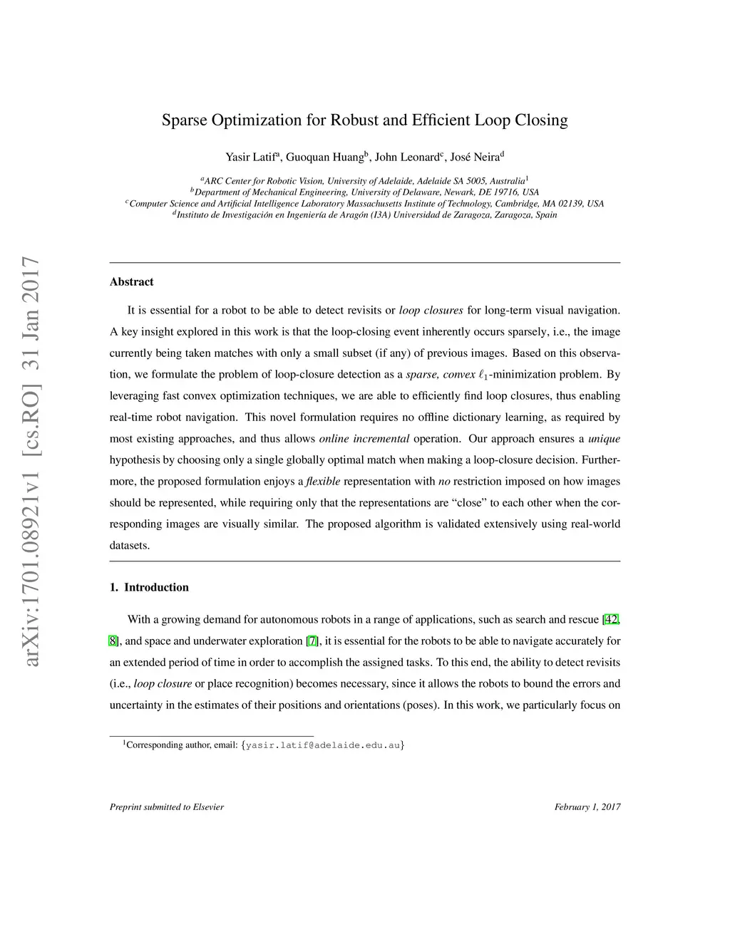It is essential for a robot to be able to detect revisits or loop closures for long-term visual navigation.A key insight explored in this work is that the loop-closing event inherently occurs sparsely, that is, the image currently being taken matches with only a small subset (if any) of previous images. Based on this observation, we formulate the problem of loop-closure detection as a sparse, convex -minimization problem. By leveraging fast convex optimization techniques, we are able to efficiently find loop closures, thus enabling real-time robot navigation. This novel formulation requires no offline dictionary learning, as required by most existing approaches, and thus allows online incremental operation. Our approach ensures a unique hypothesis by choosing only a single globally optimal match when making a loop-closure decision. Furthermore, the proposed formulation enjoys a flexible representation with no restriction imposed on how images should be represented, while requiring only that the representations are "close" to each other when the corresponding images are visually similar. The proposed algorithm is validated extensively using real-world datasets.