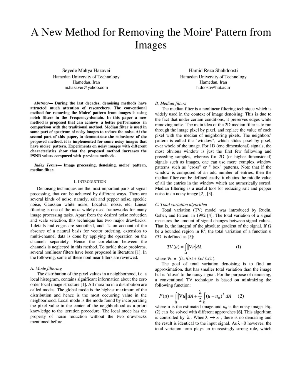A New Method for Removing the Moire' Pattern from Images