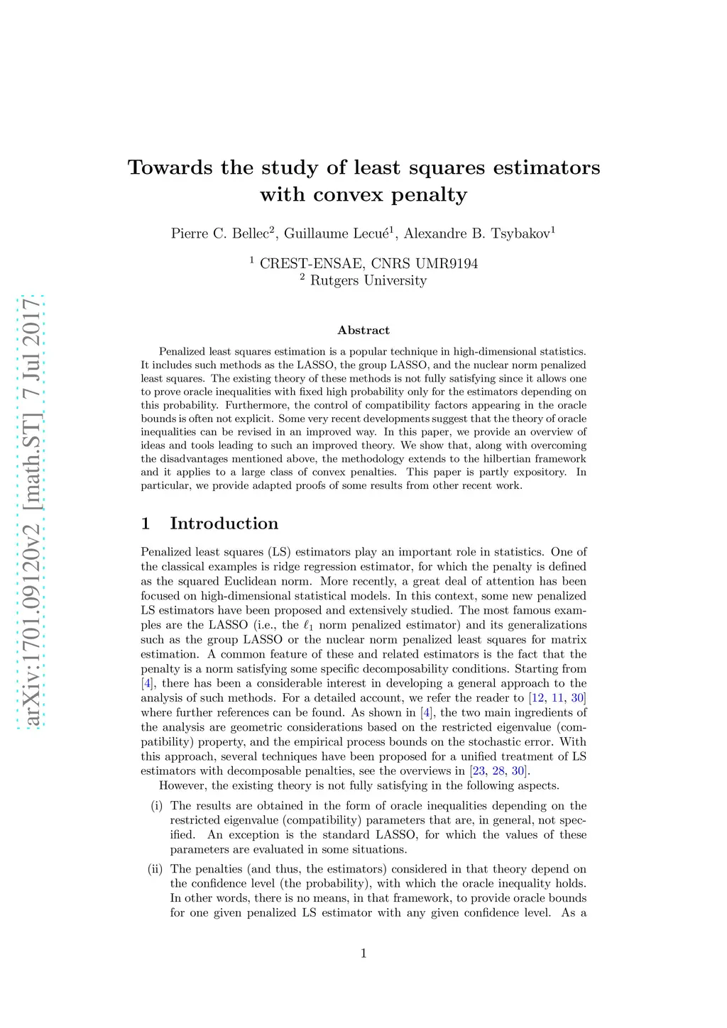 Towards the study of least squares estimators with convex penalty