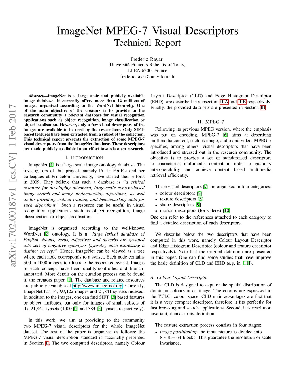 ImageNet MPEG-7 Visual Descriptors - Technical Report